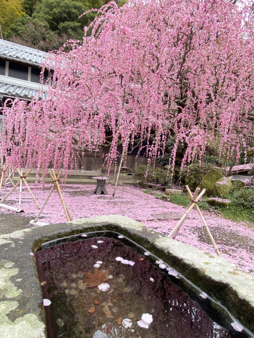 見頃は例年2月中旬から3月上旬。足元にはピンクの花びらの絨毯が広がっていて、どこを切り取っても絵になります。
